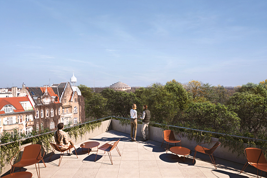The project completes and crowns the block, marking the junction of Smoluchowskiego and Wybrzeże Wyspiańskiego with an open gesture. The façade, measured and precise, folds gently to define the corner and create an iconic silhouette. Its topographic nature allows the wider complex to be reinterpreted through a new urban and functional logic.